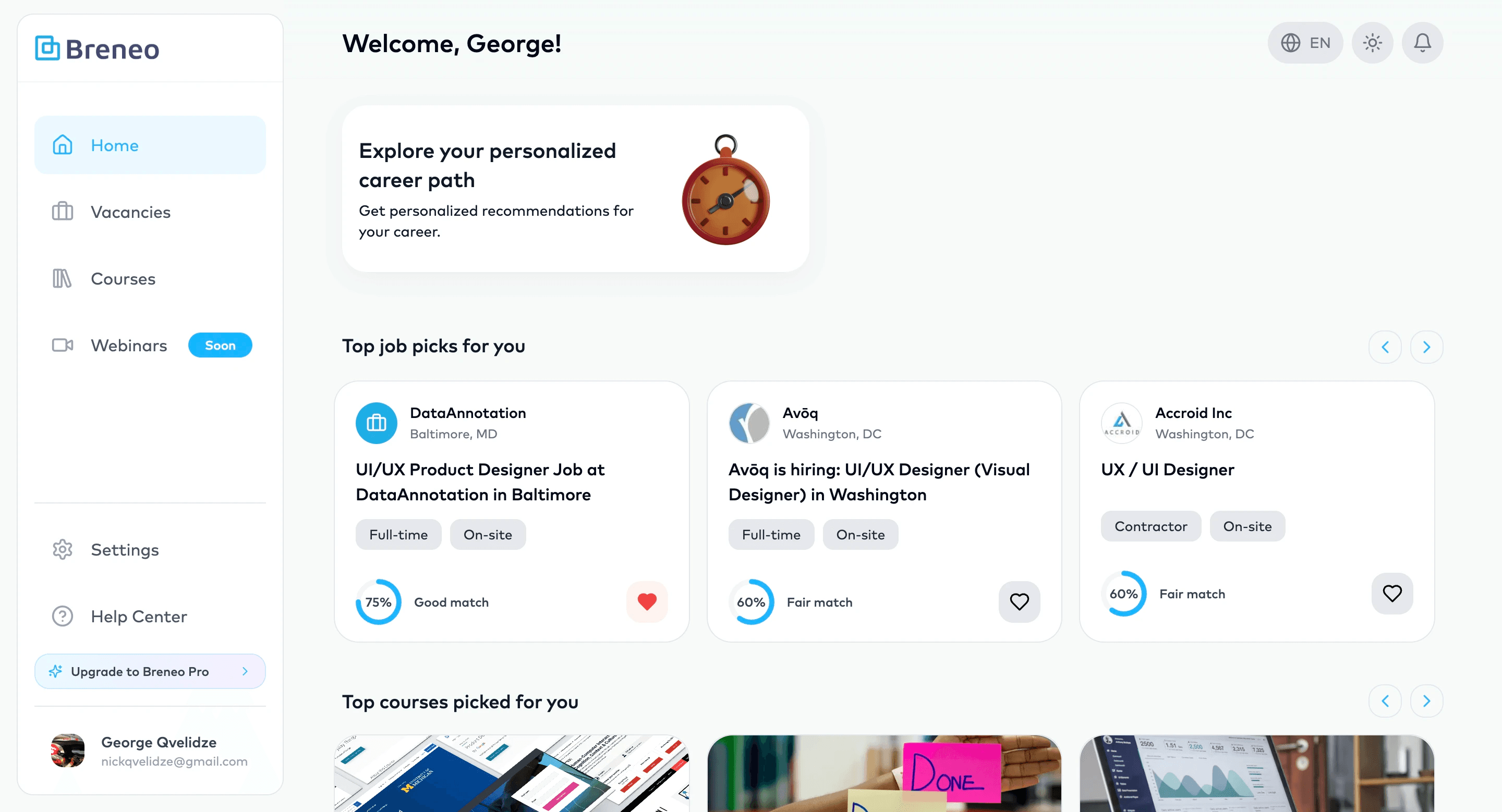 Every skill you build on Breneo directly increases your chances for real jobs, not just certificates with no impact.
